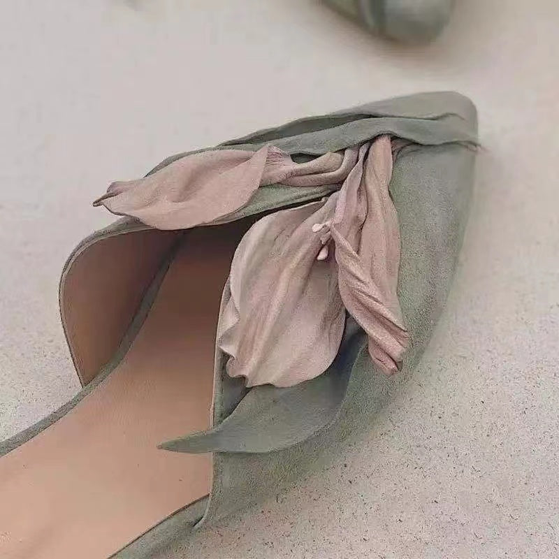 Casual Hand-Made Floral Satin Pointed Flats