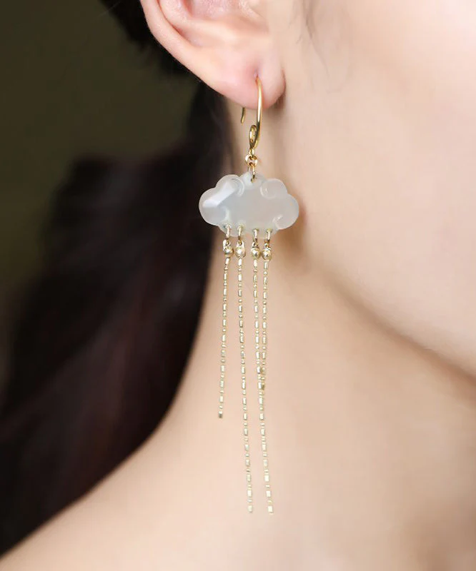 Chinese Silver Plated Gemstone Dangle Earrings