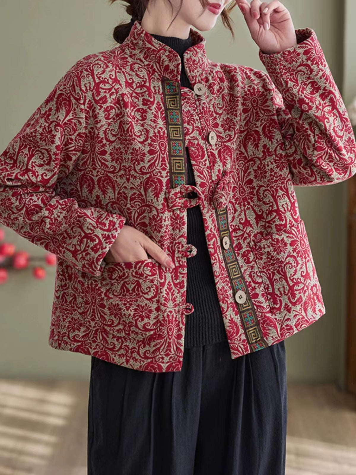 Elegant cotton jacket long-sleeved stand-up collar parka