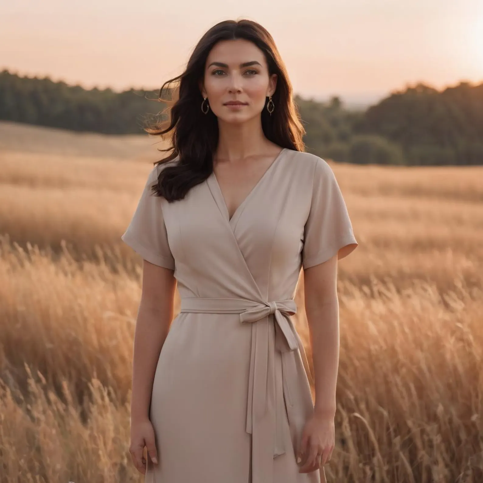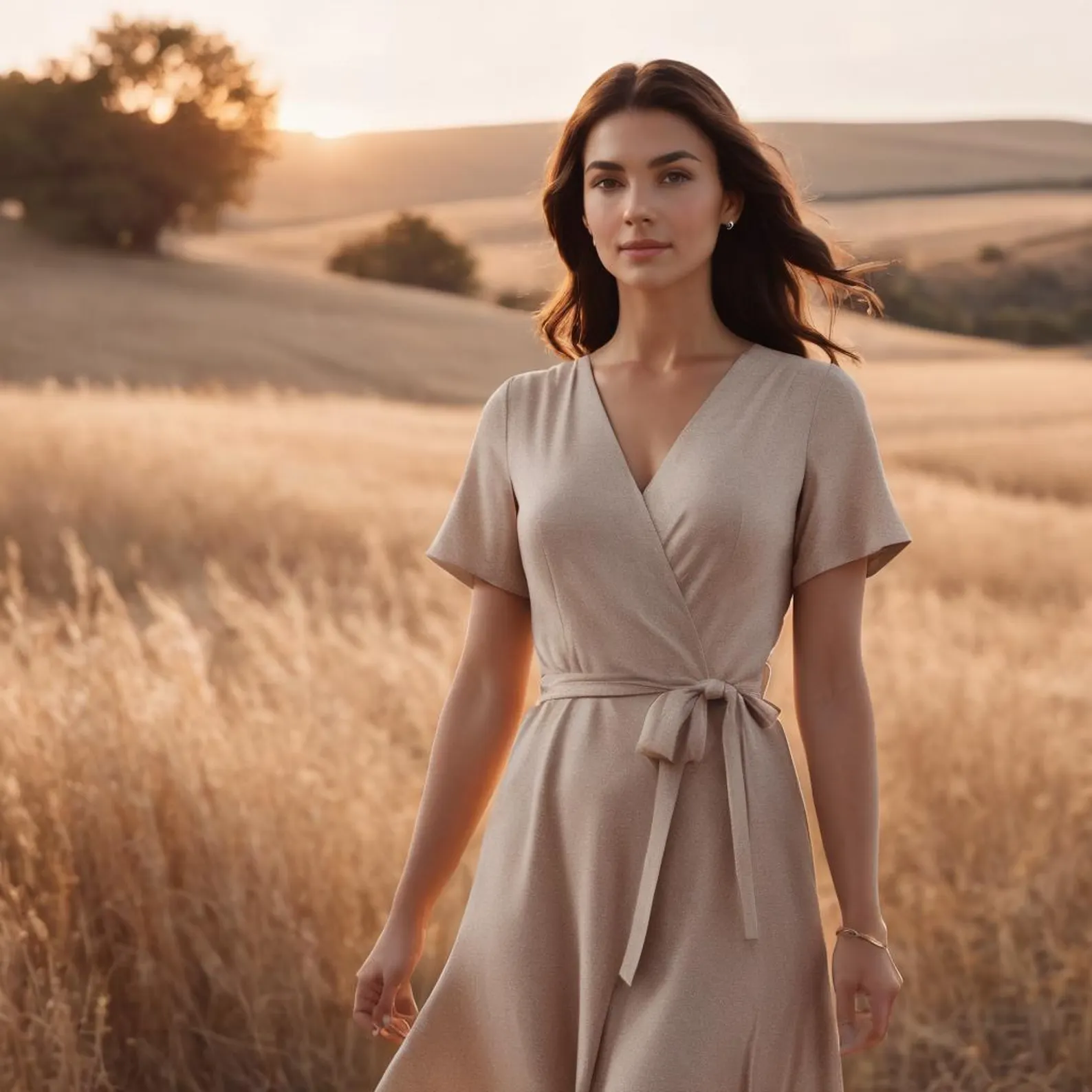 Eternity Neck Wrap Dress, Casual Chic Midi Dress, Linen