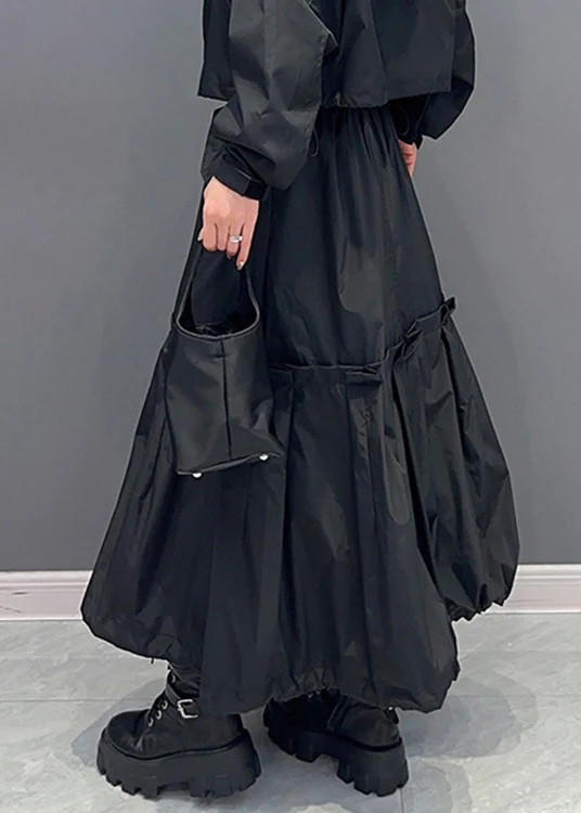 Fashion Patchwork Stretch Waist Solid Color Pleated Long Skirt