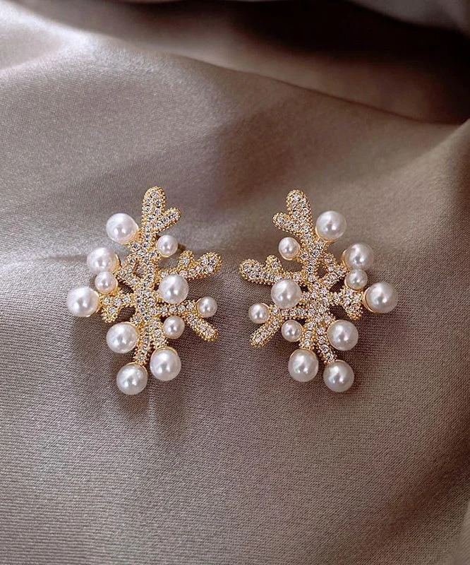 Fashion Sterling Silver Gold Plated Zirconia Coral Pearl Earrings