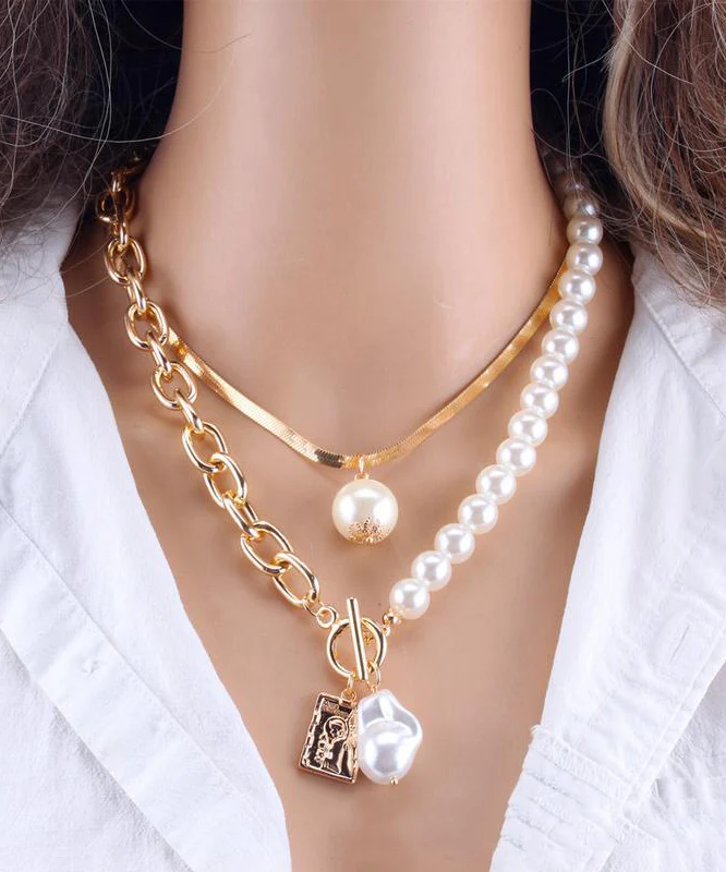 Gold Chain Pearl Necklace Ladies Baroque Pearl Metal