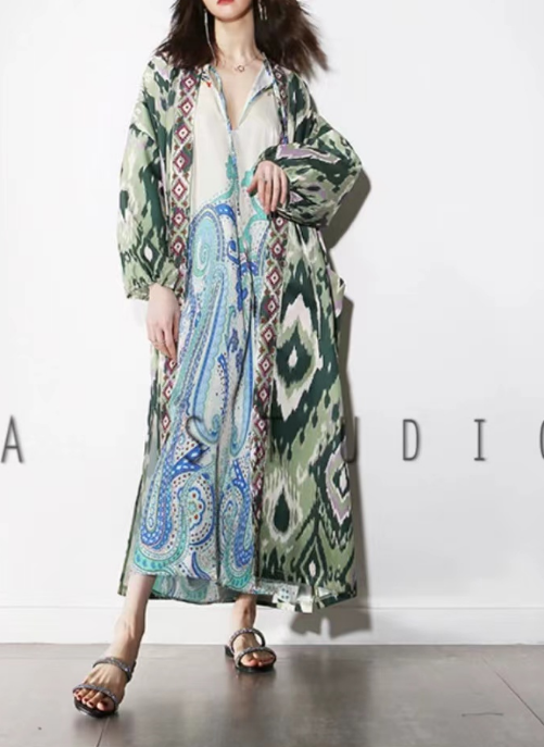 Vintage Diamond Print Cardigan Tie Thin Sun Screen Jacket