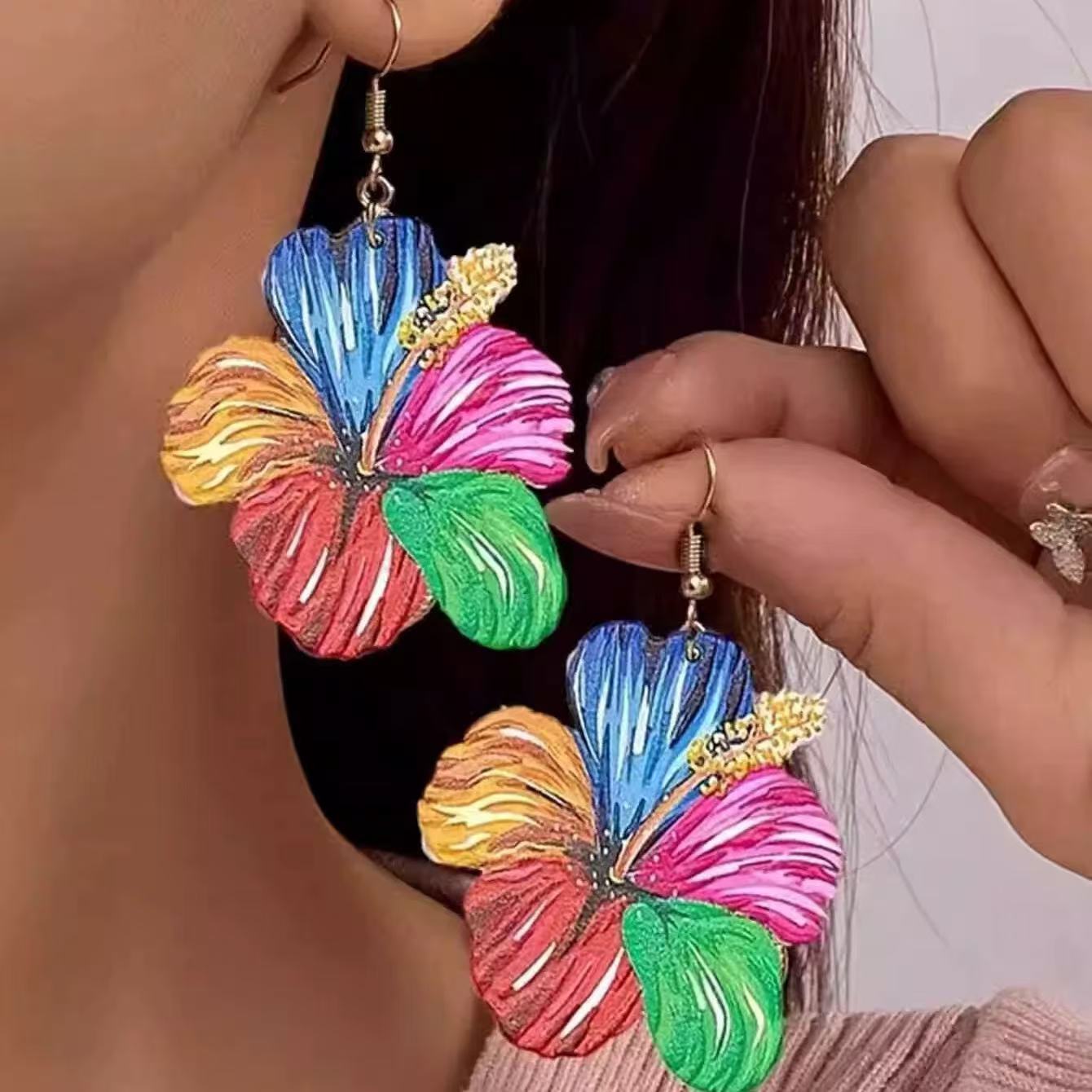 WoWomen's Flower Color Clash Drop Earrings Summer